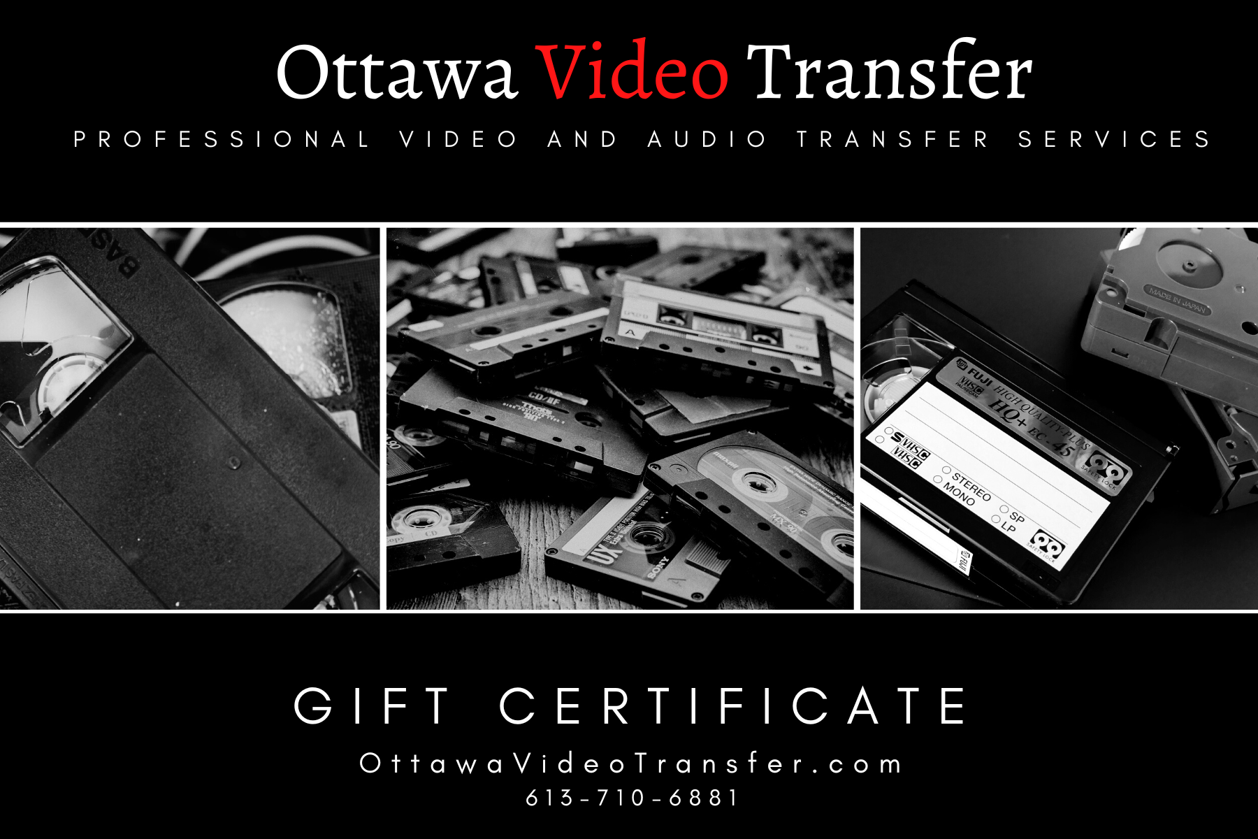 Want to know a perfect gift for a loved one? An Ottawa Video Transfer gift card is an extremely thoughtful gift. Chances are that your loved one has dozens of tapes in storage from family memories dating back years, even decades. Make sure these memories don't get ruined and lost forever.